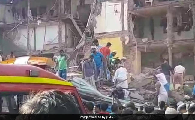 The four-storey residential building gave way around 08:40 am (0310 GMT) in the densely populated area of Bhendi Bazaar, after heavy rains in the city killed 10 people.